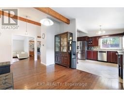 **OPEN HOUSE SUNDAY FEB 1 @ 2:00 PM** Discover the perfect blend of rustic charm and modern convenience in this beautiful bungalow, nestled in a serene, rural setting just minutes from the amenities of Kanata. Inside, you'll find a spacious, sunken living room with lofted ceilings exposed wooden beams create an airy, welcoming atmosphere, flowing into a dining area anchored by a gorgeous stone gas fireplace. The spacious kitchen boasts ample cupboard space and sleek stainless steel appliances. Retreat to one of three generously sized bedrooms, all with beautiful hardwood floors. The master bedroom features the luxury of double closets, while the main floor bath offers a large vanity with double sinks. Your private retreat extends to the fully finished lower level, complete with a comfortable family room (featuring brand new carpet and fresh paint), a full bathroom, convenient laundry and ample storage area. Outside, enjoy a large yard with a storage shed, and a canopy of mature trees. EV & Generator hookup installed! Nature is at your doorstep with walking trails and river access just a short stroll away. (id:61594)