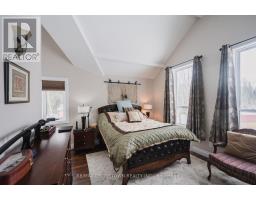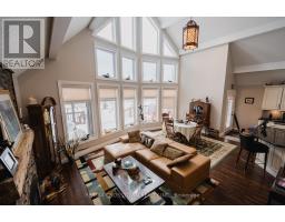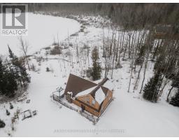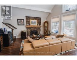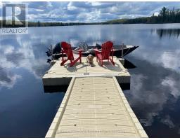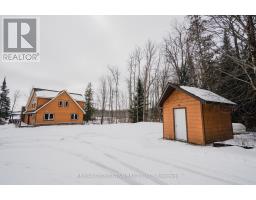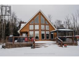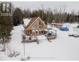 Welcome to this spectacular 1.5-storey chalet set on just under 3 acres, with 220 ft of southern exposure on beautiful Jack Lake-only minutes from Highway 11. Soaring vaulted ceilings, hardwood floors, and floor-to-ceiling windows flood the home with natural light and frame the breathtaking lake views throughout. The open concept kitchen features granite countertops, built-in stainless steel appliances, a propane stove, fridge, dishwasher, and a wine cooler seamlessly built into the island/breakfast bar. The open-concept dining and living areas are ideal for entertaining, and are enhanced by a cozy propane fireplace that is battery controlled and walkout to wraparound decking overlooking the water. The main floor offers two spacious bedrooms and a beautifully finished 4-piece bath with granite vanity, slate flooring, and a tub/shower with glass doors. Upstairs, the loft overlooks the main living space and leads to a private primary suite complete with a walk-in closet, abundant natural light, and a 4-piece ensuite featuring slate flooring, a glass shower, and double granite-topped vanities. Additional features include a security system, smart thermostat, air circulation system, and the home is roughed-in for in-floor heating-adding comfort, efficiency, and peace of mind. Outside, enjoy a 24' dock for all your water toys, a 20' x 10' garage, and two additional 10' x 12' sheds for storage. Whether you're looking for a year-round home or a peaceful country retreat, this Jack Lake property delivers the perfect blend of comfort, style, and waterfront living. Book your private showing today. (id:61594)