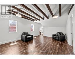 Set on a private quarter-acre lot surrounded by breathtaking gardens and mature fruit trees, this beautifully updated 4+1 bedroom home features a steel roof and an abundance of charm. A crisp concrete front porch and back walkways lead you into a spacious mudroom that sets the welcoming tone as you step inside.The main floor is open and inviting, with a bright kitchen and dining area perfect for gatherings. The family room features a cozy freestanding stove, while a large main floor bedroom adds flexibility to the layout. You'll also find a sun-filled front porch and a walk-in shower bathroom conveniently located near the home office and laundry room, which provides direct access to the garage.Upstairs, youll be impressed by the additional family room with exposed wood beams and another full bathroom. One of the upper bedrooms features a walkout porch overlooking the stunning backyard a true garden lovers dream with 78 fruit trees, including apple, pear, peach, and cherry, as well as berry bushes like gooseberry and red currants. The property also includes two chicken coops for those looking to embrace a homestead lifestyle. Updates 2025: new eavestroughs, seamless aluminum & downspouts, new soffit and facia2024 - all new floors up & down, painting, professionally refinished cabinets, quartz countertops, closet doors, baseboards. 2023 updated fridge, gas stove, built-in microwave, dishwasher, new window/doors (2002), new steel roof life warranty (2022) updated insulation in the walls (2002) Newer front porch & side concrete, Furnace 2020, Air Conditioner - 2020, New Fence, front porch (2025) (id:61594)