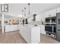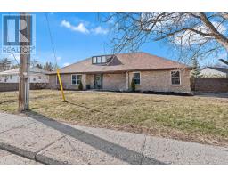 This beautifully updated 4-bedroom, 3-bathroom gem blends modern elegance with homey comfort in a serene neighborhood. Designed with luxury and functionality in mind, this 1.5-story residence is a true find. The spacious kitchen features exquisite quartz countertops and sleek black stainless-steel appliances. Enjoy slow-close drawers with hidden utensil compartments and a built-in garbage/recycling drawer, making it a chefs paradise. Luxury vinyl floors flow through the main living areas, complemented by all-new trim, while updated windows and doors, on the main level, provide abundant natural light. Entertain effortlessly in the large family room with a stylish bar area, perfect for gatherings. Two of the bedrooms boast plush new carpet, offering comfort and warmth. The primary bedroom is a retreat, featuring a lavish 5-piece ensuite with a deep soaker tub, dual waterfall shower heads with handheld attachment, and anti-fog backlit mirrors. Adjacent is a spacious his and hers walk-in closet with motion lighting. The additional 3-piece bathroom offers new flooring and a sleek shower stall for guests convenience. The backyard is a private haven designed for relaxation and entertainment. A beautiful brick privacy wall and pergola create the ideal setting for outdoor dining, while 15 newly planted cedar trees enhance the landscape, providing beauty and privacy. This property combines contemporary upgrades with timeless charm. Don't miss the chance to call this stunning house your home! Updates: Kitchen 2021-2025, Pergola 2022, New carpet in two bedrooms 2025, Main floor windows/doors 2021. (id:61594)