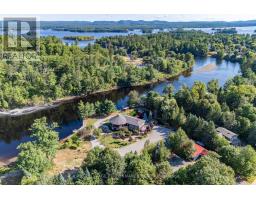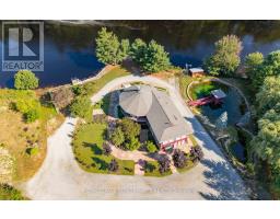 STUNNING one of a kind custom built home on 2.36 acres with ~300 feet of private waterfront shoreline. This beautiful property is absolutely perfect for large or multigenerational families offering more than 4000sqft of spacious sun filled rooms. BONUS: As a result of Re Zoning -This amazing property can also be operated as a Bed & Breakfast or Group Home. This magnificent move in ready home has undergone EXTENSIVE renovations and upgrades over the past 3 years. Work performed by qualified contractors with required permits. The home is setback from the road offering loads of privacy. It features a spring fed pond to the east, a large level lot to the west and forested hillsides to the north. The moment you walk through the new front door into the grand foyer you can immediately appreciate the impressive post and beam construction of this home. An abundance of large windows throughout the house allows for amazing views of the river, pond and gardens with custom zebra blinds installed on 29 windows. The entire home has been painted inside and out. The LR has new hardwood flooring, new ceiling fans and pot lights. The kitchen area has been completely upgraded with a new window, drop ceiling, lighting, flooring, cabinetry, sink, quartz counter tops and also boasts high end appliances. Gorgeous stone fireplace has been converted to gas. Chimney was repaired and serviced. Wood wainscoting installed on lower staircase and on firepit half walls. All wall to wall carpets on second floor have been removed and replaced with high quality LVF. New pot lights and lighting installed throughout. The second floor catwalk has been rebuilt and new railing installed to code.15 new doors installed throughout. Washrooms have been upgraded with new vanities(x5), Led mirrors(x2), toilets and new flooring on 2nd floor. Attachments include a comprehensive list of upgrades to the property including the auxiliary building. A rare opportunity to own a one of a kind waterfront property. (id:61594)