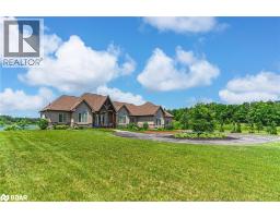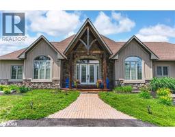 INDULGE IN LUXURY ON 2.1 ACRES WITH BREATHTAKING VIEWS, SHARED OWNERSHIP OF AN ADDITIONAL 32 ACRES, & A MAN-MADE LAKE!! Enter a realm of unrivalled elegance and awe-inspiring beauty! This jaw-dropping executive bungalow, set on 2.1 private acres, offers an extraordinary lifestyle with shared ownership of a human-made lake and 32 surrounding acres. The lake is perfect for swimming, stand-up paddleboarding, kayaking, winter hockey, or skating while stocked with smallmouth bass. Just moments from Simcoe County Forest trails, snowmobile trails, skiing, and outdoor adventures are at your doorstep. The curb appeal is simply unmatched, from the striking stone and board-and-batten exterior to the lofty peaked rooflines. Inside, nearly 4,600 finished square feet of open-concept living space showcases expansive lake views through large windows, highlighted by exquisite Brazilian cherry flooring and elegant tray ceilings with pot lights. The heart of this home is the high-end chef's kitchen, with granite countertops, top-tier appliances, an abundance of cabinetry, and a large island with seating. The spacious primary bedroom features a private deck, a walk-in closet, and a luxurious 5-piece ensuite. The custom, one-of-a-kind wrought-iron staircase gracefully leads to the walkout basement, where you'll find radiant heated floors, a spacious rec room with a bar area, three bedrooms, an indoor spa/hot tub room, and a full bathroom. Step into the 3-season Muskoka room for the ultimate in relaxation and entertaining. A triple car insulated and heated garage with high ceilings, a circular driveway with ample parking, and significant updates like newer shingles, A/C, and a boiler hot water tank for radiant heat make this a truly exceptional property. Live the life you've always dreamed of in a home that has it all! (id:61594)