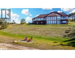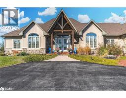 INDULGE IN LUXURY ON 2.1 ACRES WITH BREATHTAKING VIEWS, SHARED OWNERSHIP OF AN ADDITIONAL 32 ACRES, & A MAN-MADE LAKE!! Enter a realm of unrivalled elegance and awe-inspiring beauty! This jaw-dropping executive bungalow, set on 2.1 private acres, offers an extraordinary lifestyle with shared ownership of a human-made lake and 32 surrounding acres. The lake is perfect for swimming, stand-up paddleboarding, kayaking, winter hockey, or skating while stocked with smallmouth bass. Just moments from Simcoe County Forest trails, snowmobile trails, skiing, and outdoor adventures are at your doorstep. The curb appeal is simply unmatched, from the striking stone and board-and-batten exterior to the lofty peaked rooflines. Inside, nearly 4,600 finished square feet of open-concept living space showcases expansive lake views through large windows, highlighted by exquisite Brazilian cherry flooring and elegant tray ceilings with pot lights. The heart of this home is the high-end chef's kitchen, with granite countertops, top-tier appliances, an abundance of cabinetry, and a large island with seating. The spacious primary bedroom features a private deck, a walk-in closet, and a luxurious 5-piece ensuite. The custom, one-of-a-kind wrought-iron staircase gracefully leads to the walkout basement, where you'll find radiant heated floors, a spacious rec room with a bar area, three bedrooms, an indoor spa/hot tub room, and a full bathroom. Step into the 3-season Muskoka room for the ultimate in relaxation and entertaining. A triple car insulated and heated garage with high ceilings, a circular driveway with ample parking, and significant updates like newer shingles, A/C, and a boiler hot water tank for radiant heat make this a truly exceptional property. Live the life you've always dreamed of in a home that has it all! (id:61594)