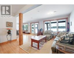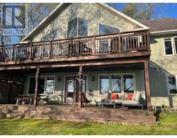 Welcome to this modern lakefront home, perfectly designed to capture stunning waterfront views and year-round enjoyment. Set on a private lake & surrounded by mature trees, this property offers exceptional privacy along with the convenience of year-round road access. A beautiful sandy beach and dock create the perfect setting for swimming, boating, and relaxing by the water. The main level features two bedrooms & full bathroom w/heated flooring , along w/a bright and inviting open-concept living space. The well-appointed kitchen includes a breakfast bar overlooking the lake, a walk-in pantry, & dedicated eating area. A welcoming family room with wood-burning fireplace completes the space, creating the perfect gathering area while enjoying scenic lake views through large picture windows that flood the home with natural light. The fully finished walk-out lower level offers excellent additional living space w/a large bedroom, full bathroom, second family room, laundry area, & ample storage-ideal for guests or extended family. Outdoor living is exceptional with two levels of entertaining space. A large upper balcony runs the full width of the home, offering plenty of room for seating & enjoying elevated views of the lake. Below, the covered patio provides a comfortable outdoor lounge area w/sliding doors connecting to the lower level. The shoreline features a beautiful sandy beach with a gentle entry into the water, creating an ideal space for swimming, lounging in the sun, or enjoying time by the lake with family & friends. The dock provides easy access for boating & waterfront recreation. The exterior features vertical hardboard siding, giving the home a rustic yet modern cottage feel. This well-maintained waterfront property on a private lake is the perfect four-season getaway or full-time residence, combining privacy, natural beauty, and year-round accessibility while maximizing light, space, and breathtaking views. 24 hrs irrevocable on all offers. (id:61594)