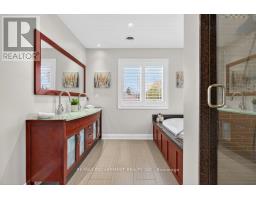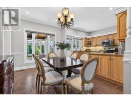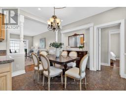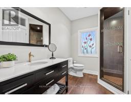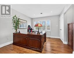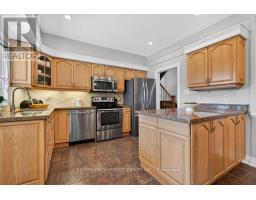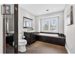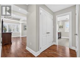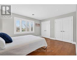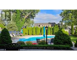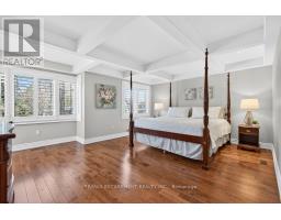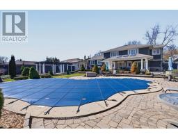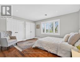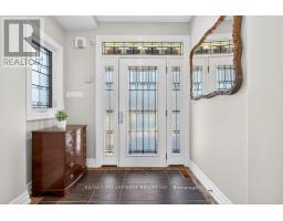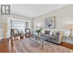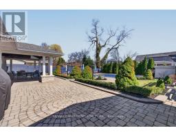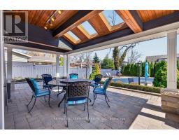 This meticulously renovated, 5-bedroom, 3500sq.ft. home, seamlessly blends architectural elegance with a resort-like backyard sanctuary. Sitting on over 1/4 acre (75.71ft x 150.27ft), the private, mature backyard is a masterclass in landscape design, framed by a lush triple-layer of emerald cedars that ensures total seclusion for the salt-water pool and its sophisticated lounging terrace. A striking vaulted covered patio with an intricate wood-inlay ceiling plus 3 skylights, offers a luxurious element and an elevated vantage point over the manicured grounds and pool. Inside, the layout is designed for both effortless entertaining and multi-generational living. The 2-storey home includes a unique side-split level with an open great room/family room that boasts an 11'7" ceiling height, and a conveniently-placed laundry room that serves both the main and upper quarters. On the main level, the gourmet kitchen, living and dining areas, transition openly with windows overlooking the stunning backyard and a walk-out to patio. There is an additional, versatile 'wing' on the main floor that features the fifth bedroom, a pristine 3-pc bathroom, a separate entry, plus the inside entry to the two-car garage - all accessible without stairs. The second level features four spacious, sunny bedrooms, including a separate primary suite distinguished by a stately coffered ceiling and 5-pc ensuite bathroom, plus there is a 4-pc bathroom on this level. The front windows in the foyer, living room, and family room have been beautifully enhanced with custom-made stained-glass windows for ultimate privacy and distinction. The lower level features a mirror-panelled exercise room/recreation room with a rubber-floor overlay (the equipment is negotiable) with windows on both ends of the room. Rich solid-oak flooring throughout the above-grade levels, and the whole home is carpet-free. Come see this very special home and property in a quiet, friendly neighbourhood of south-west Oakville. (id:61594)