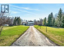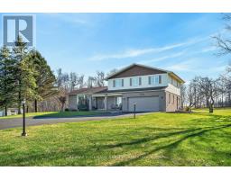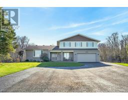 1376 MACDONALD ROAD, is a spectacular 25 acre HOBBY FARM with a beautiful custom built executive home, 4 + 1 bedroom, 4 bathroom house, perched high and back off the road accessed by a long newer quality asphalt/paved drive, lined with elegant lampposts /loads of parking - elevated for a panoramic view of surrounding countryside -serviced with TOWN WATER (brings the potential of future development). Acreage with approx 3 or 4 acres treed (make your own maple syrup), plus some farmland - neighboring farmer works it. Very picturesque with rolling topography, very private, yet open. Real curb appeal with interlock patio both front and back. Very well maintained split level, plenty of strip hardwood flooring, carpeting on bedroom level, full luxurious ensuite, walk in closet, plus a 4 piece common bathroom, all bedrooms are spacious and sun filled, formal dining room, main floor family room with corner fireplace, patio doors out to a large interlock west facing patio, large mud room off inside entrance from the double attached garage, bathroom as well, direct access to basement level from garage, large spacious rec room, bedroom and powder room on the lower level, functional layout for the kitchen with stove top island, loads of counter top & cupboard space all with an eye-shot of the family room. A very efficient Geo-thermal ground source heat pump keeps utility cost down, most windows about 6 or 7 years, shingles in great shape - two out buildings, one being a single garage and the other is a garden shed- shopping and all amenities are only a kilometer or 2 away - so convenient - OPEN HOUSE SATURDAY MAY 2nd, 2 TO 4 PM (id:61594)