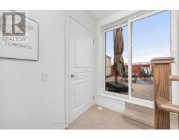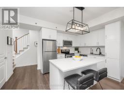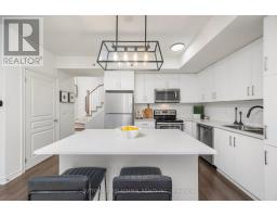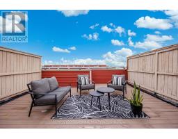 Coveted Long Branch Townhome Built by Minto, among the lowest maintenance fees in the complex! This bright and spacious 2-bedroom, 3-bathroom home features 9' ceilings, hardwood floors on the main level, and an open-concept living/dining/kitchen area with popcorn ceilings removed for a sleek, modern look. Freshly painted, the home showcases large windows with custom silhouette blinds that flood the space with natural light. The modern kitchen is equipped with quartz countertops, a breakfast bar, a contemporary backsplash, and stainless steel Whirlpool appliances. In the primary bedroom, walkout to private balcony, a walk-in closet and custom built-in closet system add convenience and organization. Enjoy outdoor living on the rooftop terrace, complete with a natural gas BBQ line and sweeping sunset views. Additional highlights include: Reverse osmosis water system (built into kitchen countertop), owned tankless hot water heater, newly installed Air Conditioner and 1042 GeneralAire Humidifier, upgraded Ecobee 3 Lite thermostat and Arlo video doorbell. Prime location, nestled just minutes from Long Branch GO Station and transit, parks, cafes, restaurants, and trendy shops. (id:61594)