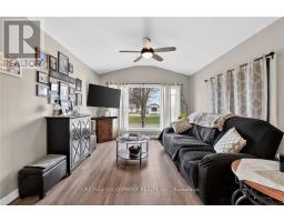Quiet, year-round country living in Ellsworth Acres Mobile Home Community in Wainfleet. Whether you're downsizing, retiring, or simply looking to escape the city, this well-maintained home offers comfortable one-level living with thoughtful updates throughout. This 1,005 sq ft bungalow features a spacious open-concept living room and kitchen with vaulted ceilings, pot lights, and newer luxury vinyl plank flooring. The kitchen is equipped with stainless steel appliances, offering both style and functionality. The primary bedroom is generously sized and includes a natural gas stove and plush carpeting. A second bedroom is located at the rear of the home - great for guests, kids, or a home office. Enjoy the bright sunroom with patio doors leading to a 16' x 12' deck-ideal for entertaining or relaxing outdoors. The property also includes a 10' x 10' covered gazebo area (perfect for a hot tub) and an 8' x 8' shed for additional storage. Recent updates include new vinyl siding (approx. 2019) and central A/C (approx. 2020), shingles replaced in approx. 2016, a new furnace (Nov 2025), and an owned tankless hot water system and water softener. Updated windows add to the home's efficiency and appeal. A move-in ready option offering comfort, charm, and low-maintenance living in a peaceful community setting. (id:61594)