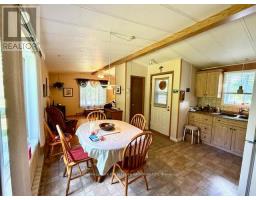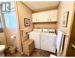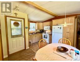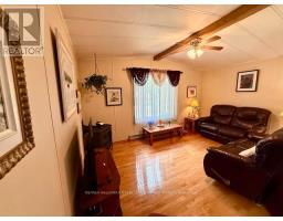 Welcome to this charming 2-bedroom mobile home on leased land, offering comfort and functionality in a peaceful and private setting. The inviting living room features hardwood flooring and a cozy propane fireplace, while the bright eat-in kitchen is perfect for everyday meals. The spacious primary bedroom boasts a wall-to-wall closet, and the main bath conveniently combined with the laundry area. Step outside to enjoy a covered/enclosed patio overlooking a large private yard, ideal for outdoor relaxation or entertaining. A rare find, this property includes a back-to-back double garage (9.15m x 4.55m) and an oversized driveway with parking for at least 10 vehicles. A wonderful opportunity for buyers seeking space, comfort, and exceptional value! Access to all of campground facilities including a restaurant, salt water pool, pond and beach area, petanque, shuffleboard, pickle ball court, beach volleyball and even a park. Planned activities every weekend of the summer. (id:61594)