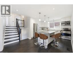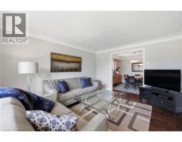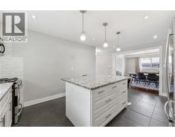 Welcome to this gorgeous fully renovated 4.5-level backsplit located in sought-after West Hamilton Mountain, bordering Ancaster. This spacious home features 4 bedrooms above grade and 3 full bathrooms, offering plenty of room for growing families or multi-generational living. Enjoy carpet-free living throughout. Modern main kitchen with granite countertops, a large eat-in island, and stainless steel appliances. The second level offers three generous bedrooms, including a primary suite with ensuite. The lower level features a large family room with a cozy gas fireplace and access to the private backyard. A second full kitchen in the basement, along with a side entrance and walk-up from the garage, provides excellent in-law suite potential. Step outside to a private, pool-sized backyard with a newer fence and exposed aggregate patio, perfect for entertaining or relaxing. Additional updates include windows and doors, soffits and fascia (2023) and furnace & A/C (2019). The home also offers parking for up to 4 cars. A fantastic opportunity in a prime location close to highways, LINC, parks, schools, shopping, and amenities. RSA (id:61594)