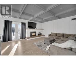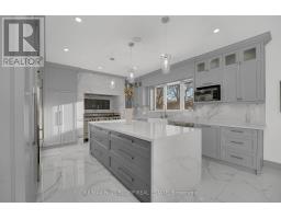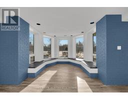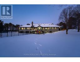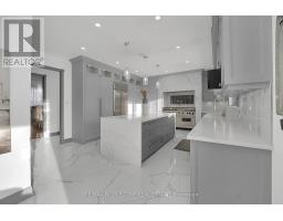 Privately set on over 2 acres in the Castlemore Estates, this residence backs onto a conservation reserve, offering exceptional scale, privacy, and versatility. Spanning 9,631 sq ft of total living space, the home features expansive living areas with engineered hardwood flooring, custom wainscoting, coffered ceilings, and multiple fireplaces. The main kitchen is thoughtfully finished with quartz countertops and backsplash, a waterfall island, high-end appliances, and pot lighting. The lower level includes a second kitchen, wet bar, sauna, and flexible space ideal for entertaining or long-term guests. Large windows throughout fill the home with natural light and frame views of the surrounding grounds. Outdoor amenities include a tennis court, inground pool, cabana, landscaped grounds, irrigation system, exterior lighting, and an interlock patio. A circular driveway provides generous parking and completes the estate setting. (id:61594)