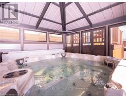 Discover this exceptional West Brant residence featuring 3 bedrooms, 3.5 bathrooms, a completely finished basement, and your own private backyard retreat! Thoughtfully designed and situated near parks, walking trails, and highly-rated schools. The exterior showcases impressive street presence with professionally landscaped gardens, paved driveway, and front balcony. Inside, you'll find a formal dining room flowing into a gourmet kitchen equipped with rich mocha cabinetry, dual pantries, and a generous center island-ideal for hosting gatherings. Beyond the composite deck lies your personal escape: a newly installed in-ground pool, relaxing hot tub, and elegant interlocking stone patio. Upstairs, the great room features soaring 14-foot ceilings and access to a second balcony, while the expansive primary suite includes a walk-in closet and spa-inspired ensuite. Two additional well-proportioned bedrooms and an upper-level laundry complete this floor. The finished lower level offers a recreation room with wet bar, modern laundry space, and a deluxe bathroom featuring heated floors and rainfall shower-with potential as an in-law suite or separate apartment thanks to direct garage access. This turnkey property combines lifestyle, functionality, and easy-care living. Don't miss this opportunity! (id:61594)