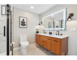 Meticulously renovated! 2,800 sq ft home + finished basement is a dream. 3 bdrms, 3 bthrms, & backyard w/ inground pool. Charming curb appeal w/ perennial gardens & covered front porch. Open-concept layout w/ 7" wide plank light hardwoods, custom wainscoting, smooth ceilings & LED potlights. Welcoming entryway w/ elegant wainscoting. Living room w/ a large window & formal dining room offers the perfect setting for gatherings. Stylish family room w/ built-ins, skylight & gas FP, all connected to the kitchen. Incredible NEW kitchen w/ extended white soft-closing cabinetry, pots & pan drawers, under valance lighting, quartz countertops & backsplash, breakfast bar & massive island w/ farmers sink & gold-tone hardware! GE Café appl. w/ smart home connection incl fridge/freezer w/ hot & cold water dispenser, 36" 6 burner gas stove & dishwasher. Custom hood fan, 2 appliance garages, wine rack & pantry. Expansive eat-in w/ direct access to landscaped garden. 4 pc bathroom & main-floor laundry room. Upstairs, the primary suite offers custom millwork, upgraded lighting, walk-in closet w/ barn door & a luxurious ensuite. 4 pc ensuite incl. custom vanity, double sinks, porcelain tiles & gold trim/hardware. Two additional spacious bedrooms w/ double closets. Main bthrm w/ a freestanding soaker tub, glass shower, double vanity w/ quartz counters, wall sconces, LED mirrors, black accents/hardware. Lower level w/ laminate floors, potlights, recreation room & versatile built-in space w/ built-ins. No shortage of storage. Backyard retreat w/ inground pool, deck & patio. Surrounded by landscaping. Situated in a well-established area among tree-lined streets. Peaceful community atmosphere & strong sense of neighbourliness. Easy access to parks/trails incl. Bayfront Park & Pier 4 Park, shopping, grocery stores, & dining options nearby. Transit access is a short walk away & straightforward access to Highways. This home is overflowing with luxury! (id:61594)