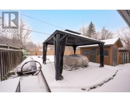 Move-in ready and meticulously maintained, this impressive 3-bedroom bungalow has been thoughtfully modernized to offer a seamless blend of style and function. The inviting foyer features durable tile flooring and a unique glass-block architectural detail at the staircase, setting a sophisticated tone the moment you enter. The sun-drenched living and dining rooms are anchored by a beautiful bow window and finished with quality laminate flooring-part of the home's completely carpet-free design. The heart of the home is the chef-inspired kitchen, boasting sleek quartz countertops, a custom tile backsplash, and premium stainless steel appliances. Organization is effortless with an abundance of pull-out drawers, a massive built-in pantry, and a convenient walk-out to the side yard and patio. Retreat to the main floor bathroom, a spa-like escape featuring a whirlpool tub, a stylish vessel sink, and elegant tile work. Three bedrooms on the main floor feature modern entry doors and sliding barn doors to conceal individual closet space. The basement offers much more living and storage areas, including a finished recreation room that serves as the perfect media or TV hub. Lots of options for the versatile den/guest room with a large walk-in closet that cleverly walks through to a hidden storage area. Enjoy a dedicated laundry area with full sink and a separate storage room equipped with built-in shelving to keep life organized. Step outside to a private "no-mow" oasis. The rear yard is fully fenced and highlights a massive 19' x22' covered deck, perfect for all-season entertaining, while the large storage shed provides extra space for tools, toys and off-season items. The driveway was repaved (approx. 3-4 years old) and offers ample room for 4 vehicles, From the neutral, contemporary decor, quality finishes, every inch of this home is designed for comfort and ease. Just turn the key - Welcome home! (id:61594)