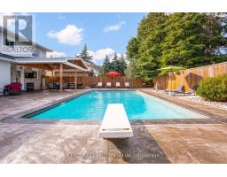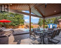 This stunning modern home, located in the highly sought-after Ridgehill Manor community of Brampton, offers impeccable design and craftsmanship with no detail overlooked. Simply move in and enjoy a lifestyle of comfort and luxury. Step into a true entertainers paradise featuring a professionally landscaped backyard that looks straight out of Homes & Gardens magazine. Highlights include a 16' x 32' heated in-ground pool, seamless stamped concrete surfaces, anda breathtaking loggia with a cathedral ceiling, built-in BBQ, surround sound, and TV connectivity. The impressive exterior continues with a double-width patterned concrete driveway accommodating six vehicles, a 1.5-car garage, and a custom covered front porch. Inside, you're welcomed by a spacious foyer with a frosted glass closet door and refined finishes throughout. The oversized, modern kitchen is a chefs dream, showcasing two-tone custom cabinetry, a large island with breakfast bar, commercial-grade gas cooktop with high end exhaust system, and stainless steel appliances. The open-concept living and dining area boasts upgraded engineered hardwood flooring and a sleek gas fireplace. Generously sized bedrooms feature refinished hardwood floors and built-in closets with organizers. The luxurious primary ensuite bath offers a spa-like experience with heated flooring, double sinks, and a large glass-enclosed shower. In total, the home offers four fully renovated bathrooms. Additional upgrades include: premium millwork and interior doors, updated electrical and plumbing systems, energy-efficient vinyl windows, stucco exterior with added insulation, tankless water heater, and central air conditioning. The lower level provides a stylish and functional retreat, with luxury vinyl flooring, a spacious fourth bedroom, a modern three-piece bath with a separate shower, and a well-appointed laundry room.This is a truly turn-key property that blends elegance, functionality, and comfort. A must-see, shows 10+++ (id:61594)