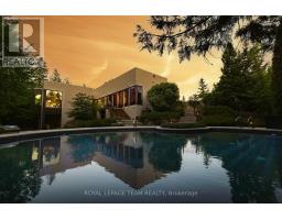 Welcome to a one-of-a-kind estate where timeless elegance, refined craftsmanship, and natural beauty come together. Tucked away on a secluded, professionally landscaped lot in the exclusive Kanata Rockeries, this 6-bed, 5-bath custom home offers over 5,100 sq ft of exquisitely designed living space. An architectural masterpiece by Richard Limmert, built by esteemed Terra Nova Building Corp. This exceptional home blends luxury and lifestyle seamlessly. Surrounded by lush gardens, water features, and mature trees, the setting feels like a private resort. Multiple patios and decks offer perfect vantage points for enjoying the saltwater infinity-edge gunite pool, cozy fire pit, and even a charming winter skating pond. Step inside to soaring 12-ft ceilings and a light-filled open-concept layout. The gourmet kitchen features an oversized island, granite countertops, and flows effortlessly into the dining and living areas ideal for entertaining. Phantom-screened doors open to peaceful views and fresh air. The primary suite is a tranquil retreat, with a walkout to a private patio, automated retractable privacy screens, a spacious walk-in closet, and a spa-like 5-piece ensuite with quartz counters, heated floors, and a rain shower. The fully finished walk-out lower level includes radiant in-floor heating, a stylish wet bar with fridge and dishwasher, private theatre room, at-home gym, and a mudroom with a built-in dog shower. Step outside directly to the pool and beautifully landscaped backyard. Smart features like a built-in generator, advanced irrigation, and snow-melting roof cables ensure year-round comfort and convenience. This is more than a home, it's a lifestyle. Where every detail has been curated for living beautifully, indoors and out. Nestled in the prestigious Kanata Lakes community you are close to all amenities and high ranking schools while being surrounded by nature and wildlife! (id:61594)