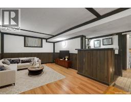 Welcome to this impeccably maintained five-bedroom, two-bathroom gem, boasting dual kitchens and nearly 2,300 square feet of versatile living space across multiple levels—ideal for growing families or multi-generational living. Complete with charming curb appeal and an oversized driveway accommodating up to three vehicles for added convenience. Inside, the thoughtful layout truly shines: the main level features a bright, inviting living room and dining area adorned with gleaming hardwood floors and expansive bay windows that flood the space with abundant natural light, a custom kitchen that’s a chef’s delight with rich oak cabinetry and sleek stainless steel appliances, plus a convenient full bathroom on the same floor. Ascend to the second level for even more flexibility, including a second full kitchen perfect for in-law suites or entertaining guests, two generously proportioned bedrooms, and an oversized four-piece bathroom for ultimate comfort. Need additional room? The third level offers two more spacious bedrooms, each equipped with ample closets providing excellent storage solutions. The fully finished basement, accessible via a separate side entrance, adds tremendous value with a vast recreation room ideal for family gatherings or movie nights, plus a fifth bedroom suited for guests, a home office, or hobby space. Outside, escape to your private backyard oasis—beautifully landscaped with a large deck for al fresco dining and relaxation, a serene pond for tranquil moments, mature trees ensuring natural privacy, and a handy storage shed for tools and extras. Nestled in a welcoming, family-friendly neighbourhood with effortless highway access and proximity to schools, parks, shopping, and all essential amenities, this home perfectly combines everyday convenience with timeless charm—envision making it yours! (id:61594)