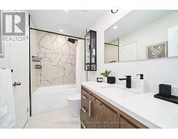 Welcome to this beautifully renovated freehold townhouse offering the perfect blend of comfort, style, and convenience. Nestled in a family-friendly neighbourhood, this 3-bedroom, 3-washroom home backs onto a peaceful wooded green space, providing a rare sense of privacy and a picturesque view all year round. Step outside to enjoy direct access to a scenic walking trail-ideal for morning jogs, weekend strolls, or simply unwinding in nature. Inside, you'll find a bright, spacious and welcoming layout with tasteful updates throughout. The main level offers an inviting flow for everyday living, with renovated hardwood flooring (2022), pot lights (2022) and fireplace (2025). Kitchen provides glamorous granite counter tops, breakfast bar, all newer stainless steel appliances (2022), spacious dining area that leads to out to a backyard patio sparing into a quiet wooded ravine. Walk up the newly renovated circular staircase (2025) to the upper level that features three comfortable sized bedrooms with two walk-in closets. Upstairs also supports newer renovations such as the 4 piece bath (2022), pot lights (2022) and hardwood floors (2022) with . The finished walkout basement adds valuable living space, perfect for a family room, home office, or guest area, with large windows that bring the outdoors in. Let's not forget the most recent value added items that have been replaced; water softener (2022), Roof (2022), sliding patio doors on both main and basement (2022), rear patio facing window (2022). Conveniently located with top-rated schools nearby, and close proximity to all amenities including shopping, dining, parks, and public transit, this home truly checks every box. Warm, renovated, and move-in ready, it's the perfect place to create lasting memories. Don't miss this opportunity! (id:61594)