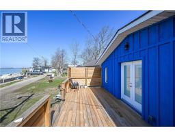 Possibly the best priced waterfront property available in Niagara’s Golden Horseshoe. Features an extensively renovated, from the “studs-out” in 2023, beautiful presented cottage located in Featherstone Park - a privately owned park home to over 100 cottages bordering the banks of Lake Erie’s Golden South Coast. Relaxing 50-55 min commute to Hamilton, Brantford & Hwy 403 - 20 mins west of Dunnville’s amenities - similar distance east of Port Dover’s popular attractions - near the sea-side village of Selkirk. This Erie Treasure is positioned perfectly on large leased land lot at end of quiet Pike Lane enjoying breathtaking, panoramic water views from the the cottage’s oversized windows & new 260sf treated wood deck-2025 - literally just a few steps to gorgeous private sand beach situated directly in front of property. Introduces 600sf of open concept living area showcasing brilliant white kitchen - leads to bright & airy living room/dining room combination segues to open style primary bedroom - continues to multi-purpose room (possible bedroom), storage room & side entry foyer - completed with 3pc bath. Stylish vaulted ceilings & garden door deck walk-out compliment the modern decor with nautical flair. Attached versatile shed houses laundry facilities. Professional 2023 upgrades & improvements include - new Atlantic Blue board & baton wood exterior siding, roof shingles, windows, flooring, 100 amp electrical, plumbing, insulation, drywall, kitchen/bath cabinetry, light/plumbing fixtures. Extras - all appliances, concrete pier foundation, ductless mini-split heat/cool HVAC, 2000 gal water cistern & 2000 gal holding tank. Featherstone Park allows for 9 month occupancy (must vacate January/February/March) with annual lease of $4,400 includes property tax & use of play-park, volleyball court & 2 beaches. Affordable waterfront “Majesty” (id:61594)