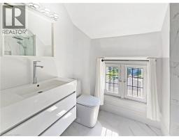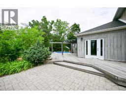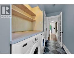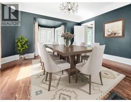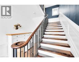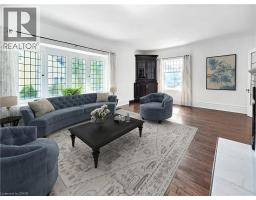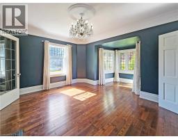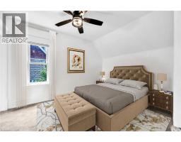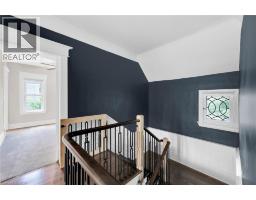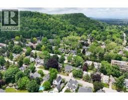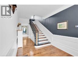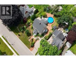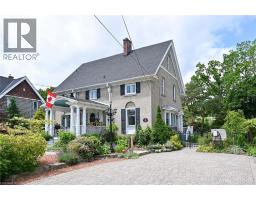 STATELY 2 1/2 STORY GEORGIAN STYLE DESIGNATED HISTORICAL HOME. Built in 1905, known as the Helen Gibson House. Located on large property in the heart of the downtown core on quiet tree-lined street below the escarpment among other character homes. Beautifully updated throughout! The front of this home is graced by the impressive neo-classical vaulted portico with pillars. Spacious foyer opens to large family room with newly installed wood burning fireplace insert in 2023 and oversized leaded glass bay window to bring in the light. Formal dining room with leaded glass windows overlooking the gardens. New kitchen installed in 2023. Main floor laundry, 2PC bath, main floor den/office with wall-to-wall bookcases. Double sliding doors lead to deck, patios & backyard oasis complete with pool & gazebo. Open staircase to upper-level leads to primary bedroom with walk-in closet & ensuite bath. Two additional bedrooms & bath. Second staircase leads to attic (764 square foot space) great potential to create extra living space. OTHER FEATURES INCLUDE: hardwood floors, new roof shingles 2018, new above ground pool 2024, new hot tub 2024, stainless steel appliances in kitchen, washer/dryer, 2 1/2 baths, 200 amp service. Heat pump, A/C & new on-demand water heater (owned) 2023. Long interlock double driveway (fits 4 cars), EV charger, walkway & patios. Two garden sheds. Perfectly situated a block from the downtown core and a short stroll to the Bruce trail & park. This heritage home is surrounded by its award-winning gardens. Calling all historians: It will take only one visit for you to fall in love with this rare offering! Some photos virtually staged. (id:61594)