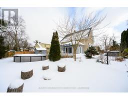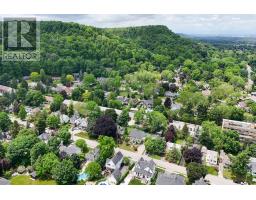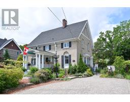 STATELY 2 1/2 STORY GEORGIAN STYLE DESIGNATED HISTORICAL HOME. Built in 1905, known as the Helen Gibson House. Located on large property in the heart of the downtown core on quiet tree-lined street below the escarpment among other character homes. Beautifully updated throughout! The front of this home is graced by the impressive neo-classical vaulted portico with pillars. Spacious foyer opens to large family room with newly installed wood burning fireplace insert in 2023 and oversized leaded glass bay window to bring in the light. Formal dining room with leaded glass windows overlooking the gardens. New kitchen installed in 2023. Main floor laundry, 2PC bath, main floor den/office with wall-to-wall bookcases. Double sliding doors lead to deck, patios & backyard oasis complete with pool & gazebo. Open staircase to upper-level leads to primary bedroom with walk-in closet & ensuite bath. Two additional bedrooms & bath. Second staircase leads to attic (764 square foot space) great potential to create extra living space. OTHER FEATURES INCLUDE: hardwood floors, new roof shingles 2018, new above ground pool 2024, new hot tub 2024, stainless steel appliances in kitchen, washer/dryer, 2 1/2 baths, 200 amp service. Heat pump, A/C & new on-demand water heater (owned) 2023. Long interlock double driveway (fits 4 cars), EV charger, walkway & patios. Two garden sheds. Perfectly situated a block from the downtown core and a short stroll to the Bruce trail & park. This heritage home is surrounded by its award-winning gardens. Calling all historians: It will take only one visit for you to fall in love with this rare offering! (id:61594)