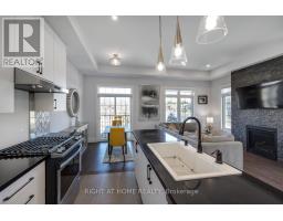 Welcome to 14 Seagrave Lane, a bright corner 3-storey semi-detached home spanning 2,315 sq.ft. Exquisitely decorated and thoughtfully upgraded, this home offers 3 spacious bedrooms, a versatile den, 4 bathrooms, and a dedicated home office nook, with sweeping panoramic views of the ravine and pond. Enjoy hardwood flooring, quartz countertops, extended upper kitchen cabinets with pantry, and tall upgraded extended doors throughout. Soaring 10-ft ceilings and upgraded 7" trim create an upscale atmosphere, while the gas fireplace with a stunning stone accent wall brings warmth and sophistication. Designed with both comfort and convenience, the home features pot lights throughout and a walkout to a beautifully landscaped yard with new interlocking stone patio (2024) Smart storage solutions include a custom coat and shoe organization area, craft cupboard with adjustable shelving, and custom closets in every bedroom. Additional upgrades include custom built-in wine rack with barrel display and modern ceiling fans. All of this in a prime location, just minutes from top-rated schools, parks, shopping, amenities and quick access to Highways 401, 407 and 412. Visitor parking spots available for guests! (id:61594)