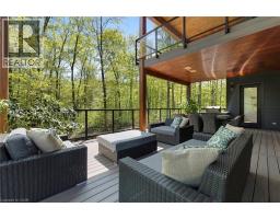 This stunning home embodies the epitome of modern luxury seamlessly integrated into a breathtaking natural landscape. Nestled in towering woods, this architectural gem offers a retreat with every imaginable comfort. Step inside to discover a blend of sleek contemporary design and rustic charm. This home boasts not one, but two cozy fireplaces, creating inviting spaces for relaxation. With two balconies and a walk-out patio, find yourself immersed in the beauty of the surrounding greenery from every angle. Backing onto Hole 11 at Deerhurst Highlands Golf Course, this residence ensures privacy and tranquility. Whether you're enjoying your coffee overlooking the forest or hosting under the stars, the views and ambiance will captivate you. Inside, every detail has been curated for both style and functionality. From the gourmet kitchen equipped with top appliances including a Miele coffee maker and double wall oven, to luxurious ensuite bathrooms and spacious bedrooms, no expense has been spared in creating an ambiance of elegance. Entertain with ease in the landscaped outdoor spaces, complete with a firepit and rock seating area enveloped by mature trees. Whether you're roasting marshmallows with loved ones or unwinding after a long day, this haven is sure to be the heart of many cherished memories. Conveniently located near schools, shopping, and trails, yet tucked away in a quiet enclave, this home offers the perfect balance of seclusion and accessibility. With highway access, exploring all that Huntsville has to offer has never been easier. This exceptional property comes equipped with modern conveniences, including carbon monoxide and smoke detectors for safety, high-end appliances and furnishings. The furniture is negotiable, allowing you to move right in and start enjoying the Muskoka lifestyle to the fullest. Don't miss your chance to own this retreat where luxury meets nature. Prepare to fall in love with the unparalleled beauty of this setting. (id:61594)