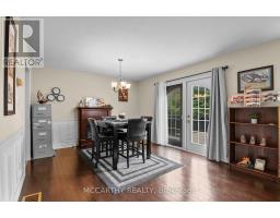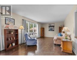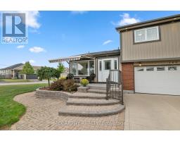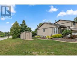 Great Curb Appeal, Large Corner lot with large lot 80 x 100ft, Large front entrance, Big back yard deck and Hot Tub with Hard cover. 3 Bedroom 2 Bathroom well maintained 3 level Side split. Pretty entrance of paving stone walkway around the house and steps up to a welcoming deck, has convenient & pretty motorized awning for shade and privacy. Come into the bright and airy 3 season sunroom entry. Door way into Large foyer with tile floor, double closet w modern sliding doors. Well Lit Eat in Kitchen with plenty of cupboards with large window over double sink. Hardwood floors in Combined Dining room and Living room. Living room has large picture window over looking the large Back Deck deck. Eat dinner in the large Dining room that is combined with the living room, Electric Fireplace. Garden Doors Walk out from the dining room to the back deck and spacious back yard, great for family time or entertaining. Enjoy evenings in your own Gazebo covered Hot Tub. Double door gate to back yard. Spacious side yard with a large wood shed approx. 10ft x 16ft with hydro. Upper level has three good sized bedrooms and a spacious 4 piece Bathroom. Lower level Rec room has cozy gas fireplace and is spacious and plenty of room for family time and entertaining. 2nd Bathroom on lower level 3pc w large walk in tiled shower. The laundry room with plenty of cabinets for storage and folding. Utility room is combined with the laundry room. Need space for parking, this is it, 2 car garage plus Concrete driveway with parking for 4 plus, total 6 parking spots, Great for the working couple, work vehicle, recreation vehicle, visitors or extended family cars. (No need to worry about winter parking spots. )Street is quiet as not a drive thru street, Corner lot is large and has good size side and back yard. Very close to Elementary and Secondary schools, parks, recreation/arena. Perfect well maintained home for family living. Desired location, Move in ready. Book showing today, Must See. (id:61594)