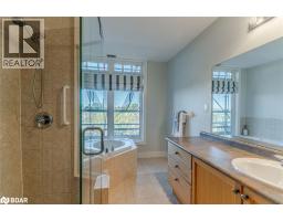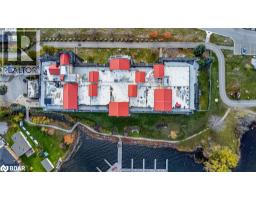2,208 SQ FT PENTHOUSE WITH MASSIVE ROOFTOP TERRACE, PRIVATE BALCONY, 2 PARKING SPOTS, LAKE VIEWS & RARE PRIVATE DOCK SLIP! Here’s your chance to own the crown jewel of Elgin Bay Club, a highly sought-after waterfront penthouse with over 2,200 sq ft of light-filled living space and jaw-dropping views of Lake Couchiching. This bright corner unit features an expansive private rooftop terrace with panoramic views of the lake and Orillia skyline, plus a balcony with a glass sliding walkout overlooking the marina, waterfront park, and downtown. Minutes to shops, dining, trails, parks, beaches, and a marina, this prime location is all about lifestyle. The kitchen offers white cabinets with some glass inserts, granite counters, a bold black/white tile backsplash, an updated built-in oven and cooktop, a large pantry and a breakfast nook. The expansive living and dining areas are anchored by a gas fireplace and feature dual furnace systems with separate heat controls. The generous primary bedroom includes a sitting area, a walk-in closet and a 4-piece ensuite with a glass shower, jacuzzi tub and massive vanity. A 4-piece main bath serves the second bedroom. Bonus second-level loft with a walkout offers added living space and flexible use. Newer vinyl flooring is featured throughout most areas, with in-suite laundry and ample storage adding everyday convenience. Two owned parking spaces, one underground and one outdoor, an exclusive storage locker, make daily living easy. Residents enjoy amenities including a party/meeting room, rooftop deck, community BBQ and visitor parking. Enjoy exclusive ownership of one of Elgin Bay Club’s rare private dock slips, as one of the few residences with this privilege, so you can pull up on your boat, store your kayak, and savour waterfront living! Fees include water, parking, building insurance and common elements. Opportunities like this are few and far between - make this rare waterfront penthouse your #HomeToStay before someone else does! (id:61594)
