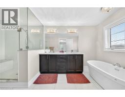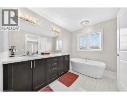 This is the home you’ve been waiting for! A true 10+++ property, proudly owned and meticulously maintained by its original owner. Just 7 years new, it’s located in a highly desirable, family-friendly Ancaster neighbourhood—directly across from Tiffany Hills Park, steps to an elementary school, and offering the rare privacy of no rear neighbours. This custom-built stone and stucco two-storey home offers approximately 3,000 sq. ft. of finished living space. Featuring 4+1 generously sized bedrooms and 4 bathrooms, it also provides ample street parking and a fully fenced backyard complete with an oversized pressure-treated deck—perfect for entertaining. Enjoy bright natural light throughout, with a main floor boasting 9-foot ceilings and high-end finishes, including an upgraded kitchen, hardwood flooring, tile, and granite. The professionally finished basement includes a cold cellar, adding even more functional space. Ideally located close to schools, parks, shopping, transit, and offering quick access to Highway 403 and nearby amenities like Costco. NOTHING TO DO BUT MOVE IN AND ENJOY —this home must be seen! Priced to sell and rarely offered in this area. (id:61594)