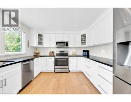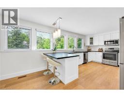 Dreaming of a beautifully updated home, on a picturesque 0.45 acre private lot, located in a family friendly neighbourhood, at the end of a quiet court? Welcome to 140 Wellington Street in charming Old Waterdown, being offered for the first time in over 30 years! The curb appeal is exceptional with a custom stone patio, water feature and gorgeous gardens. Inside, a calming neutral palette and engineered hardwood flow across the main level. The custom eat-in kitchen is a chef’s delight, featuring granite counters, abundant cabinetry, a breakfast bar and a large picture window overlooking the lush front gardens. Adjoining dining and living areas are bright and airy, with wall-to-wall windows framing stunning views of the park-like backyard. The private second-level primary retreat offers peaceful seclusion and beautiful views overlooking your pristine property. The main floor also includes two generous bedrooms and an updated 4-piece bath. The lower level adds a fourth bedroom with a walk-in closet, a modern 3-piece bath, laundry, lots of storage, a workshop and excellent potential for a future rec room. The backyard is an outdoor enthusiast’s paradise, featuring stunning perennial gardens, mature trees for exceptional privacy, a tranquil water feature, custom stone patios perfect for entertaining, newer fencing, and a fully enclosed vegetable garden. Practical extras include a double driveway, attached double garage with inside entry and direct basement access, and parking for up to six cars. Ideally located within walking distance to shops, restaurants, trails, schools and parks, with quick access to the GO train and major highways. Extensively updated and move-in ready. Simply unpack and enjoy your new home! (id:61594)