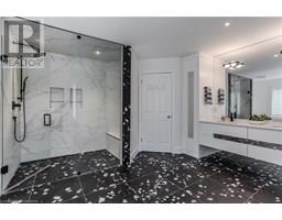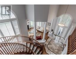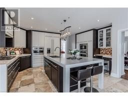 Welcome to this exceptional residence on a quiet court in the prestigious Tyandaga Highlands community. Set on a rare corner lot, this fully renovated home offers 6039sf of living space, ideal for large or multigenerational families seeking luxury, privacy, and functionality. Upon arrival, the curb appeal is striking—an elegant brick and stone façade, landscaped grounds with stone retaining walls, and a 9-car concrete driveway, plus a rare triple car garage. A grand archway entrance and spiral staircase set the tone for the upscale finishes found throughout. Step inside to a bright, open-concept layout designed for everyday luxury. Hardwood floors and California shutters run throughout, complemented by refined details including tray ceilings, wainscotting, and crown moulding. The formal living room is flooded with light from 4 large windows and features a gas fireplace. The spacious dining room is ideal for hosting, while the show-stopping kitchen offers quartz countertops, island with seating for 5, built-in appliances, dual wall ovens, and a sun-lit breakfast nook with access to the back deck. A family room with gas fireplace and a home office complete the main level. Upstairs, the primary suite feels like a retreat, complete with a large walk-in closet, a spa-inspired ensuite with a freestanding tub, oversized glass shower w/ bench, and dual sink vanity. 2 additional bedrooms share a modern 4pc bathroom. A separate upper-level wing, accessible through a 2nd staircase, offers a private bedroom with 2 walk-in closets, sitting room, and ensuite bath—perfect for in-laws, teens, or a live-in nanny. The fully finished basement with separate entrance includes a rec room w/ fireplace, full kitchen w/ heated floors, bedroom, and 2 3pc bathrooms (one with heated floors)—an ideal secondary living space. Outside, enjoy a pool-sized yard with elevated deck, large patio with pergola, and ample green space for kids and pets. This home is truly one-of-a-kind, don’t miss out! (id:61594)