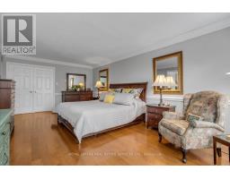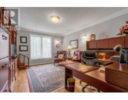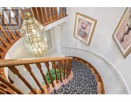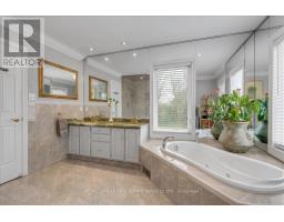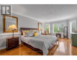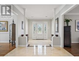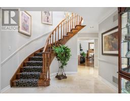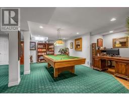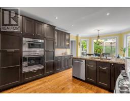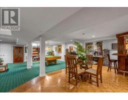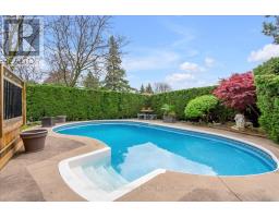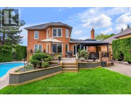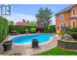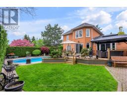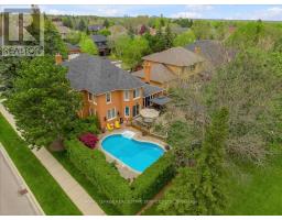 Welcome to the distinguished Fairway Hills community in Glen Abbey. This meticulously maintained, original owner home boasts over 5400 sq. ft. of total living space. Enjoy incredible privacy in your backyard backing onto green space with a saltwater pool. 4+1 bedroom & 4.5 bathroom residence that showcases many elegant features including grand foyer, vaulted ceiling, skylight, extensive use of rich dark hardwood flooring, crown moulding & 3 gas fireplaces.Experience the traditional centre hall plan! Formal living room with gas fireplace & formal dining room, perfect for hosting. Updated kitchen w/ soft-close dark wood cabinetry, granite counters, S/S appls. incl gas stove, built-in oven & microwave, Bosch D/W, glass-front cabinets, pots & pan drawers, wine rack, pantry, pot lights & generous eat-in area. The family room impresses w/ vaulted ceiling, hardwood floors, wainscoting, & gas fireplace. The main floor incl. office & laundry. Wood spiral staircase leads to the 2nd level. The primary bedroom features double-door entry, large windows, & spacious walk-in closet. 5-pc ensuite w/ marble tile, glass shower, Jacuzzi tub & double sinks. 3 additional bedrooms, incl. one with private ensuite. Finished lower level w/ open-concept recreation room features gas fireplace & custom bar, games area with Murphy style bed. Separate room, perfect as gym/bedroom, includes servery with sink & fridge. 3-pc bathroom & ample storage. The backyard is a true oasis with heated saltwater pool, deck with pergola, & garden shed/cabana. South west exposure! Irrigation system services both front & rear gardens w/ dripper feeders. Mechanicals incl furnace (2011), A/C (Trane 2024), roof shingles (2020) & windows (2016).As a resident of Fairway Hills, you'll enjoy access to 11 acres of private, manicured grounds & community events including golf tournaments, picnics, & festive holiday gatherings. This community boasts top rated schools, walking trails, Glen Abbey Golf course and much more! (id:61594)