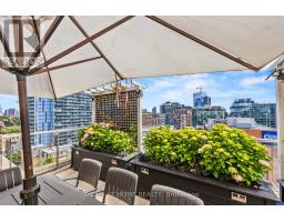 Fantastic Oppourtunity, to own a Unique Urban Garden Space Overlooking the Core. An Extraordinary Offering at King George Square, Impeccably Renovated Corner Residence Redefines Luxury Urban Living with a Remarkable approx. 1,400 sqft Private Terrace-a Truly Rare feature in the Heart of Downtown Toronto. Designed for those who value Sophistication, Scale, and Seamless Indoor-Outdoor Living, this 2-bedroom, 2-bathroom suite delivers an Unparalleled Lifestyle Experience. The Refined interior Showcases a Thoughtfully Curated Open-Concept Layout, Bathed in Natural Light from its Southeast Exposure. The Bespoke Chef's Kitchen is outfitted with Premium Gaggenau Integrated Appliances including a 24" Gaggenau Wine Fridge, Sleek Custom Cabinetry, and Elegant Finishes, flowing effortlessly into the living and dining spaces-perfect for both Intimate Evenings and Elevated Entertaining. Custom built-ins, including a Stylish Bar and Wine Storage, add a layer of understated Luxury and Functionality. All Designer Bathrooms & Kitchens Imported from Italy. The Primary Bedroom Sanctuary features direct access to the Terrace and a beautifully appointed ensuite, offering a serene retreat above the city. The second bedroom, enhanced with a custom CLEI Rotational Bed, Imported from Italy, provides versatility as a Sophisticated Guest Suite or Executive Home Office. This Exceptional Residence is complemented with 1 underground parking space, a storage locker, along with Exclusive Building Amenities including 24-hr Concierge Service, Fitness Centre, Party & Meeting rooms, and a Rooftop Garden. Perfectly positioned just steps from St. Lawrence Market, the Distillery District, Premier Dining, Transit, and The Waterfront, this is a Rare Opportunity to own a Statement Home offering Privacy, Prestige, and Expansive Outdoor Living in the City's Core. (id:61594)