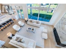 Experience uncompromising luxury in this newly built, architecturally striking residence where every detail has been meticulously curated and no expense has been spared. Designed and built by its owner-an architect-as his primary residence, this 5000 + sqfts of living space custom home reflects exceptional attention to detail and uncompromising quality throughout. From the moment you enter, the level of craftsmanship is immediately evident-featuring a sun- filled main floor office, soaring cathedral ceilings, and dramatic floor-to-ceiling triple- glazed windows and doors that flood the home with natural light. Designed for both elegance and functionality, the heart of the home is a bespoke chef's kitchen showcasing premium Miele appliances, custom cabinetry, and refined finishes, seamlessly complemented by a secondary kitchen and a fully finished lower level with matching attention to detail. The grand two-storey living space is anchored by a statement fireplace, while smart home integration enhances everyday living with built-in sound, security, and climate systems. This home is rich with high-end features, including heated flooring at the main entrance and in the primary ensuite with Wi-Fi control, an electric vehicle charger in the garage, and thoughtfully designed systems throughout. All bedrooms offer private ensuites with custom glass showers and premium fixtures, while the primary retreat provides a spa-like experience with elevated finishes and comfort. The lower level continues to impress with oversized windows allowing abundant daylight, along with a custom bar, home theatre, gym, and additional living space. It also includes a convenient secondary (backup) laundry and provisions for a full cooking kitchen, offering excellent flexibility for extended family or future use. A second-floor laundry adds everyday convenience and functionality. *** (id:61594)