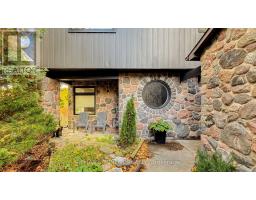 If you're looking for something truly unique, this is it! A stunning stone home on nearly 1/2 acre, backing onto the Petticoat Creek Ravine. Set back from the street, the property features a landscaped 50 ft frontage, a circular driveway, and a double car garage. Inside, the home has been beautifully renovated with an open-concept kitchen, a large breakfast bar, oversized windows that offer a fantastic view and so much light, and a walk-out to a balcony overlooking a breathtaking 385 ft deep lot surrounded by nature. The main floor includes a cozy family room with a stone fireplace, a bright and open living and dining area, and a large laundry room as well as a 2 piece powder room. Upstairs offers three spacious bedrooms, including a primary suite with beamed ceilings, a luxurious ensuite with walk-in shower, and a private deck with panoramic views. The finished lower level features a walk-out to the garden, a beautifully renovated bathroom, laminate floors, and a versatile study currently used as a bedroom. There is more space currently being used for an office. This exceptional property combines character, charm, and privacy-offering the best of country living in the city. Move-in ready and truly one of a kind! Located in Pickering's sought-after Woodlands community, just minutes to Petticoat Creek Conservation Area, waterfront trails, parks, and schools. Enjoy quick access to Highway 401, GO Transit, shopping, and restaurants while living on a quiet, tree-lined street surrounded by nature-offering the perfect blend of convenience and tranquility. (id:61594)