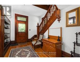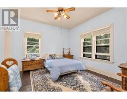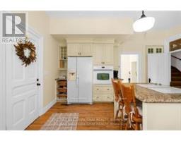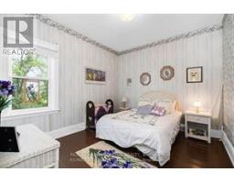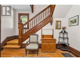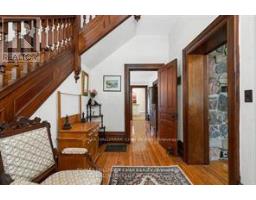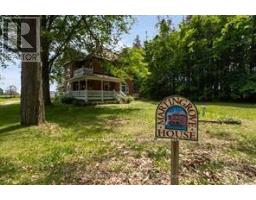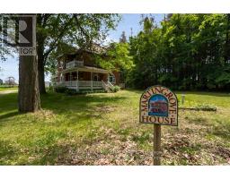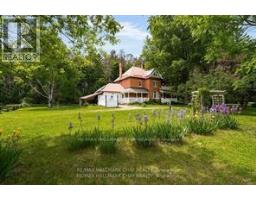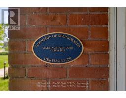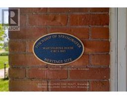 Welcome to Martingrove! One of springwaters designated Heritage homes. The handcrafted details are stunning, this home will call you... Built in 1906 on a private 2.57 acre property surrounded by mature trees and backing and siding onto a farm field. Sound of birds and tanquility. Original Wavy stained glass windows and stained glass transom windows with Fleur-de-lis above doorways. Hardwood flooring on main and upper. Solid field stone wood fireplace surround. Two bathrooms 3 piece on main and very large spa size bathroom on upper. Updated electrical, metal roof. The hand crafted railing and balusters are breath taking.Back staircase from kitchen with a gorgeous amber glass fixture and fleur de lis transom window. Wrap around porch for serene outdoor seating. Hot Tub off the back deck. Solar panel contract that draws income. This home is charming and grand. (id:61594)
