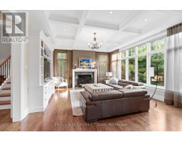 This exceptional estate, designed by the renowned Andre Godin, blends timeless elegance with modern luxury, offering breathtaking views of its serene Rideau Forest surroundings. Nestled on a quiet cul-de-sac, this magnificent mansion is situated in one of the city's most prestigious and sought-after neighbourhoods. Boasting six bedrooms and seven bathrooms, this stunning residence offers an unparalleled living experience, with high-end finishes and exceptional craftsmanship throughout. The homes classic architectural details and sophisticated design create an atmosphere of refined comfort and grandeur. A separate wing with a private entrance provides an independent living space, complete with a dedicated office, a sunlit mudroom, and a rear deck, all finished to the same impeccable standard as the main residence. Designed for seamless entertaining, the property features two kitchens, a chefs kitchen that opens to an inviting living room with coffered ceilings and a wood-burning fireplace, as well as a secondary catering kitchen for effortless hosting. Step outside to a sprawling covered deck that offers panoramic views of the lush, landscaped backyard, complete with a tranquil pond and private sauna.This extraordinary home is a rare opportunity to own a one-of-a-kind luxury retreat in a truly prime location. (id:61594)