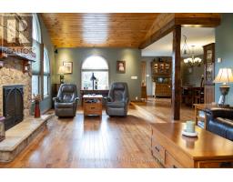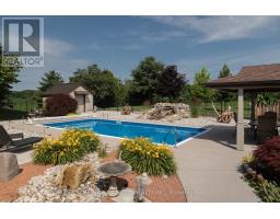 Meticulously maintained & spotlessly clean 3+1 bedroom, 2 bathroom ranch home with an attached garage and a detached & heated 24 x 84 workshop! This gorgeous home boasts a sprawling floorplan with spacious eat-in kitchen, formal dining room and the stunning living room with vaulted ceilings and custom floor to ceiling gas fireplace. Three good sized main floor bedrooms with a 4-piece bathroom, gleaming hardwood flooring, trim and doors, and large windows allow plenty of natural light. The basement offers a fully finished mancave/rec room with another gas fireplace, a 3-piece bathroom, utility room, laundry room and another bedroom. Plenty of deep closets and storage space throughout. The sprawling 1.33-acre yard is beautifully landscaped and features a magnificent inground pool with waterfall feature, gazebo, pool shed, concrete and flagstone walkways. The extra deep private driveway can accommodate numerous large vehicles, an RV or two, boats, trailers, etc. and leads to that magnificent heated workshop with concrete flooring and roll up doors. Most every major component of the house and property has been upgraded or replaced recently so maintenance costs should be minimal for years to come. Nothing to do but move in and enjoy. Located on a quiet paved road in a stunning setting, backing onto gorgeous rolling farmland and small bush, this property needs to be seen to be fully appreciated. Book your private viewing today. (id:61594)