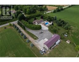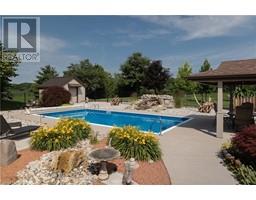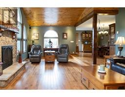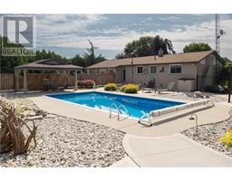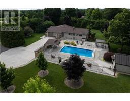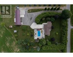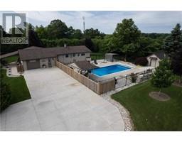 Meticulously maintained & spotlessly clean 3+1 bedroom, 2 bathroom ranch home with an attached garage and a detached & heated 24’ x 84’ workshop! This gorgeous home boasts a sprawling floorplan with spacious eat-in kitchen, formal dining room and the stunning living room with vaulted ceilings and custom floor to ceiling gas fireplace. Three good sized main floor bedrooms with a 4-piece bathroom, gleaming hardwood flooring, trim and doors, and large windows allow plenty of natural light. The basement offers a fully finished mancave/rec room with another gas fireplace, a 3-piece bathroom, utility room, laundry room and another bedroom. Plenty of deep closets and storage space throughout. The sprawling 1.33-acre yard is beautifully landscaped and features a magnificent inground pool with waterfall feature, gazebo, pool shed, concrete and flagstone walkways. The extra deep private driveway can accommodate numerous large vehicles, an RV or two, boats, trailers, etc. and leads to that magnificent heated workshop with concrete flooring and roll up doors. Most every major component of the house and property has been upgraded or replaced recently so maintenance costs should be minimal for years to come. Nothing to do but move in and enjoy. Located on a quiet paved road in a stunning setting, backing onto gorgeous rolling farmland and small bush, this property needs to be seen to be fully appreciated. Book your private viewing today. (id:61594)