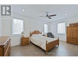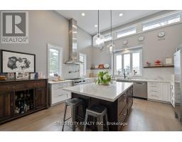 This architecturally striking home offers the perfect blend of modern luxury and natural serenity. Thoughtfully designed with elevated features throughout from heated garage floors to a sleek metal roof this property delivers both comfort and style in every detail. Nestled among lush, mature trees, its prime location offers easy access to all major amenities while maintaining a private, tranquil setting. Step inside and be captivated by the soaring cathedral ceilings that rise to an impressive 18 feet, flooding the open-concept living space with natural light. At the heart of the home, a showstopping reclaimed wood staircase adds warmth and character as it elegantly connects the main and upper levels. The main floor boasts a private master retreat complete with a spacious ensuite, while the oversized dining area and cozy gas fireplace make the family room perfect for both everyday living and large-scale entertaining. The chefs kitchen features an expansive center island and direct access to both a dedicated BBQ area and a covered porch that overlooks low-maintenance landscaping no grass, just curated greenery for effortless enjoyment.  Downstairs, the finished lower level offers incredible flexibility with potential for multi-generational living, a home gym, theatre, or recreation space. This one-of-a-kind home stands out in every way designed to impress and built to last. (id:61594)