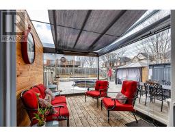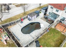 This is a rare opportunity to own a fully loaded end unit freehold townhome with three season sunroom, heated saltwater inground swimming pool, private boat storage in your own backyard and a high end kitchen with breakfast bar, quartz waterfall counter, custom cabinetry, backsplash & brand new stainless steel appliances. Filled with natural light from the moment you enter the cathedral ceiling in the foyer combined with that feeling of warmth throughout this home truly offers something for everyone. This is a unique opportunity to own an extremely private resort like backyard at an affordable price while being very conveniently located minutes to 401/ 115/ 35 / 418, steps to transit, schools and parks. Let's break down all the features. The heart of the home is the fully renovated kitchen, featuring an eat-in dining room with breakfast bar & walking out to a 10 x 12 glass sunroom that overlooks the inground pool and a meticulously landscaped backyard-perfect for relaxing or entertaining. The backyard also includes a hot tub, gazebo, raised flower beds & three outbuildings. The deck is made from thermal wood & there is even a 4.4 X 9.4 foot artificial grass area for your dog making this backyard completely maintenance free. Upstairs, you'll find three spacious bedrooms, including a walk-in closet in the second bedroom, offering extra storage and flexibility. The finished basement adds even more living space with a convenient wet bar including cabinetry & built-in shelving- ideal for hosting family and friends in doors when you are not enjoying the outdoors. Windows (2017), Furnace & A/C (2005), Hot Water Tank Owned (2016), Sunroom (2018), Pool Liner (2020) , Pool Pump (2025), Kitchen (2020), Freshly Painted Top to Bottom (2026) Whether you're a growing family, a downsizer who loves to entertain and doesn't want to compromise on lifestyle, or simply someone looking for a slice of resort-style living at home, this property truly checks all the boxes. (id:61594)