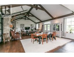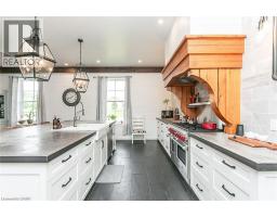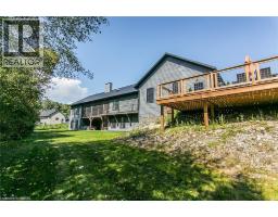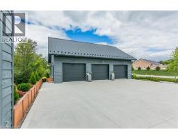 Spectacular Custom-Built Bungalow with Walk-out Basement, Triple Car Garage & Detached 2-Storey Garage & Shop on Two Acres-just 35-45 min from Waterloo! Nestled in an exclusive enclave of executive homes in Moorefield, this property offers a peaceful country setting with easy city access. Built like no other, it showcases structurally superior ICF (insulated concrete form) construction & a lifetime metal roof-the same quality extends to the det garage. Inside, the open-concept layout features exposed timber-frame details, soaring vaulted ceilings & 2 glass garage doors that open onto a 3-season porch. The kitchen, dining & living area impress w/ a stone f/p, concrete counters, oversized island & fantastic walk-in pantry w/ floor-to-ceiling storage. At its heart: an 8-burner Wolf gas stove, double ovens & upgraded range hood-over $40,000 in luxury appliances! Entertain year-round w/ the screened porch, complete w/ outdoor kitchen, brick hearth & fume hood for your bbq. The main floor also boasts a stunning primary suite w/ walk-in closet, spacious dressing rm & spa-inspired ensuite. A 2nd bedroom, currently an office, offers lovely treed views. A stylish mudroom, laundry rm & powder rm w/ live-edge barn door complete the main level. The fin w/o basement features heated floors, 2 bedrooms, 4-pc bath & expansive rec spaces-perfect for family gatherings or games night. 2 more w/o garage doors lead to the backyard & patio. For hobbyists, the 3-car gar is wired for an EV, while the sep insulated 2 storey workshop w/ electrical & wood stove provides endless options for projects, vehicles or gym. The nearly 2-acre property incl a pool-sized lot, new tiered deck, firepit area, treehouse & almost an acre of forest w/ a creek running through it. Your own private retreat! (id:61594)