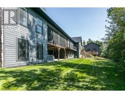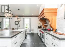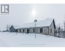 Spectacular Custom-Built Bungalow with Walk-out Basement, Triple Car Garage & Detached 2-Storey Garage & Shop on Two Acres-just 35-45 min from Waterloo! Nestled in an exclusive enclave of executive homes in Moorefield, this property offers a peaceful country setting with easy city access. Built like no other, it showcases structurally superior ICF (insulated concrete form) construction & a lifetime metal roof-the same quality extends to the det garage. Inside, the open-concept layout features exposed timber-frame details, soaring vaulted ceilings & 2 glass garage doors that open onto a 3-season porch.The kitchen, dining & living area impress w/ a stone f/p, concrete counters, oversized island & fantastic walk-in pantry w/ floor-to-ceiling storage. At its heart: an 8-burner Wolf gas stove, double ovens & upgraded range hood-over $40,000 in luxury appliances! Entertain year-round w/ the screened porch, complete w/ outdoor kitchen, brick hearth & fume hood for your bbq. The main floor also boasts a stunning primary suite w/ walk-in closet, spacious dressing rm & spa-inspired ensuite. A 2nd bedroom, currently an office, offers lovely treed views. A stylish mudrm, laundry rm & powder rm w/ live-edge barn door complete the main level. The fin w/o basement features heated floors, 2 bedrooms, 4-pc bath & expansive rec spaces-perfect for family gatherings or games night. 2 more w/o garage doors lead to the backyard & patio. For hobbyists, the 3-car gar is wired for an EV, while the sep insulated 2 storey wrkshp w/ electrical & wood stove provides endless options for projects, vehicles or gym. The nearly 2-acre property incl a pool-sized lot, new tiered deck, firepit area, treehouse & almost an acre of forest w/ a creek running through it. Your own private retreat! (id:61594)