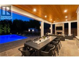 Welcome to 1411 Willowdown Rd, an exceptional custom-built residence, designed by Keeren Design, on a oversized pie shape lot in prestigious Southwest Oakville. This home combines timeless curb appeal with thoughtful design and superior craftsmanship. The exterior’s classic presence leads into a bright and inviting interior where every detail has been carefully considered. Upon entering, the foyer opens to an elegant dining room and a private office, setting the tone for the home’s refined yet comfortable style. The chef’s kitchen features a large island, high-end integrated appliances, and a walk-through servery that connects seamlessly to the formal dining room. Designed for both everyday living and entertaining, the kitchen flows into a spacious family room anchored by a striking fireplace and floor-to-ceiling windows that frame views of the backyard. A generous mudroom and direct access to the oversized three-car garage complete this level. Upstairs, the home offers four large bedrooms, each with its own ensuite and ample closet space. The primary suite is a luxurious retreat with a spa-inspired five-piece bathroom, a custom dressing room, and serene views over the rear gardens. A well-appointed second-floor laundry room adds an element of convenience. The fully finished lower level extends the living space by nearly 2,800 square feet and is enhanced with radiant in-floor heating. A fifth bedroom with ensuite access, a gym, a media room, and a spacious recreation area with fireplace and wet bar provide endless opportunities for both relaxation and entertaining. Outdoors, the property has been transformed into a private retreat with professional landscaping, a covered porch with built-in BBQ, an expansive stone patio, and a pool. Mature trees provide natural privacy and a picturesque setting. This home provides an outstanding opportunity to own a home that balances elegance, comfort, and functionality in one of Oakville’s most desirable neighbourhoods. (id:61594)