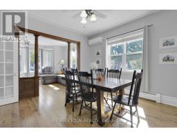 The character isn't lost on this beautifully maintained century home, perfectly situated right in town. A charming covered front porch welcomes you inside, where a unique spiral staircase sets the tone in the foyer. The open-concept living and dining area showcases original trim and high ceilings, offering the perfect blend of history and function. A convenient two-piece bathroom, main floor bedroom (currently used as an office) and large, updated kitchen with refinished cabinets and modern LG appliances, including a gas range (2025), complete the main level. Just off the kitchen, the rear-entry space leads to the lower level as well as a private backyard with a deck, natural gas BBQ hookup and access to the single car garage. Downstairs, you'll find laundry, storage, and a cozy rec room perfect for kids or as a casual family space. Upstairs you'll find two generous bedrooms and a beautiful bright four-piece bathroom with double vanity. Extensive updates ensure comfort and efficiency: a high-efficiency boiler and heat pump with three mini-split heads (2025), 200-amp electrical service (2024), an owned hot water tank (2023), added insulation in both attic and exterior walls, new washer and dryer (2024), fresh vinyl flooring in the basement, and a poured concrete 6 car driveway (2021). Set in a convenient location, this home is close to community amenities as well as the brand new elementary school opening in 2026. This home offers timeless character with thoughtful updates, ready for you to move in and enjoy. (id:61594)