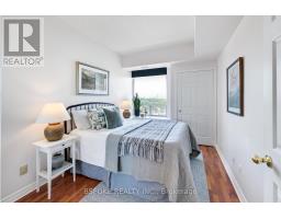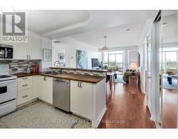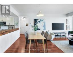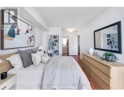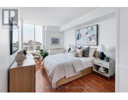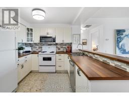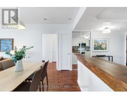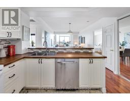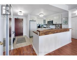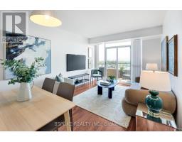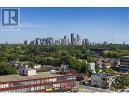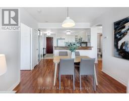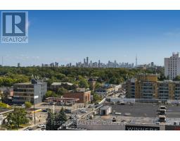 Set high above Englemount-Lawrence, this lower penthouse delivers the mix of space, light and ease that lets you stay rooted in the neighbourhood you love. Over 900 sq ft plus a balcony, the two-bedroom, two-bath layout is split for privacy-ideal for hosting without compromise-while 9-foot ceilings and south-facing, floor-to-ceiling windows pull in daylight and a clear view of Toronto's downtown skyline. The open-concept living and dining area connects to the balcony through sliding doors for easy indoor-outdoor flow. In the kitchen, warm white cabinetry offers generous storage, butcher-block countertops add texture and warmth, and a breakfast bar brings casual seating for coffee, cards, or conversation. Warm-toned wood flooring adds cohesion without competing with the light. The primary suite is the kind that makes simplifying feel easy: room for a king-sized bed, a walk-in closet, and a private ensuite. The second bedroom is large and bright and sits next to the second full bathroom-great for guests or a quiet office. Practicalities are covered: one parking space and a locker are included; visitor parking makes hosting straightforward; and the building's thoughtful amenities add confidence to daily life-a Shabbat elevator, concierge, gym, pool and sauna, party room, media/theatre room, billiards/games room, and guest suites for visiting family. For the buyer who insists on Englemount-Lawrence, this suite pairs familiar community with a light-filled home base-clear, comfortable, and ready for what's next. (id:61594)