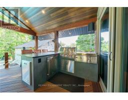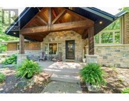 Grand River Waterfront Masterpiece! Exquisitely updated throughout by "Kreekside Construction" this 4 bedroom, 4 bathroom Bungalow with walk out basement is situated on "Muskoka" Like lot with over 20 km of navigable water. Incredible curb appeal with detached 20' x 30' garage. Entertainers dream backyard Oasis complete with covered porch, TV, stone clad double-sided gas FP, outdoor kitchen, 3 hole putting green, barrel sauna, hot tub, & heated pool. The easily accessible waterfront area includes extensive armour stone, entertaining area & 6' x 20' Dock. Stunning interior offers approximately 3200 sq ft of living space highlighted by great room with v. ceilings, fireplace, custom kitchen cabinetry with granite, & walk-in pantry, dining area, 3 MF bedrooms including primary suite with spa bathroom with soaker tub & walk in shower. Lower-level features rec room with woodstove, 4th bedroom, 2 pc bath, plus gym/living room with 2 pc bath & separate entrance. Live the Grand River Lifestyle! (id:61594)