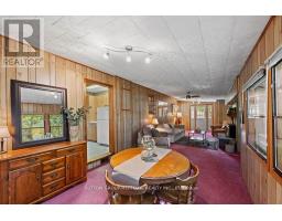 Welcome to 142 Cedarshores, a peaceful waterfront getaway nestled on the beautiful Trent Severn Waterway. This charming 2-bedroom, 1-bathroom bungalow offers over 1,100 square feet of comfortable living space, ideal for weekend getaways or year-round living. Across the river from the undeveloped and serene Hardy Island, home to nesting bald eagles and abundant wildlife, the setting is truly a nature lovers dream. The open-concept kitchen features generous counter space and a breakfast bar, seamlessly flowing into the living room with picturesque views of the water. A spacious dining area and cozy family room, accented by an airtight wood stove fireplace, make it perfect for relaxing evenings and intimate dinners. Step out into the large screened-in porch, an ideal spot for morning coffee or winding down while overlooking the tranquil river. Enjoy direct access to the diverse Trent system right from your own private dock and single wet boathouse perfect for boating, fishing, swimming, and exploring. The oversized detached 2- car garage offers ample storage, and a recently installed UV water filtration system adds convenience and peace of mind. With year-round road access, regular garbage collection and just minutes to the amenities of Campbellford, convenience meets natural serenity. Move in and enjoy as-is or update to suit your personal style. This property can also be offered fully furnished, including recreational and yard maintenance equipment, so you can settle in with ease. Don't miss this rare opportunity to own a slice of paradise in one of Ontario's most beautiful natural settings. (id:61594)