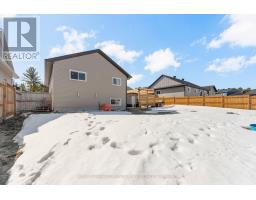 Welcome to this stunning 4-bedroom, 3-bathroom home built in 2023, perfectly situated in one of Petawawa's most sought-after subdivisions. From the moment you arrive, you'll appreciate the modern curb appeal and oversized single garage that offers extra storage and convenience. Step inside to a spacious split-level entry that leads to an open-concept main floor filled with natural light. The kitchen is the heart of the home, featuring stylish quartz countertops, a large center island ideal for entertaining or meal prep, and sleek stainless steel appliances. The adjoining dining and living areas provide the perfect space for family time or hosting guests, all framed by large windows that make the space feel bright and welcoming. The upper level showcases elegant engineered hardwood flooring, adding a warm and refined touch throughout the main living spaces. Continuing on the main floor you'll find a full bathroom, two well-sized bedrooms, and a beautiful primary suite complete with a private ensuite featuring a large walk-in shower. Downstairs, you'll find a generous rec room with a cozy natural gas fireplace and plush carpet underfoot-ideal for movie nights or relaxation. There's also an office or den, a fourth bedroom perfect for guests or family, another full bathroom, and a convenient laundry/utility room. Step outside to your own backyard oasis with a custom pergola, patio area, and a landscaped walkway leading along the side of the home to the front yard. Enjoy the durability and charm of the brand-new 2026 back stone steps, along with a fully fenced yard that provides security and space for children or pets. A convenient BBQ gas hookup on the back patio makes outdoor entertaining simple and enjoyable. This home offers the perfect blend of modern finishes, functional space, and outdoor comfort-move-in ready and waiting for your family to enjoy. 24 hour irrevocable on all offers. (id:61594)